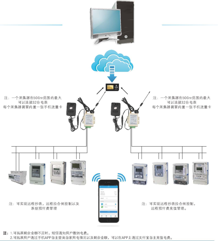 主要特點:wifi聯網,應用計算機管理,先購電后用電;在額定電流范圍內能限制最大使用功率(由供電部門限定);短信通知或自動斷電告警用戶購電;電量為零時,自動拉閘斷電;并具有一定的防竊電軟件設計等。