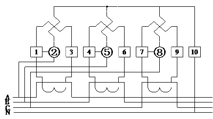 DSS6607型三相四線經(jīng)電流互感器接線圖(圖4.3)