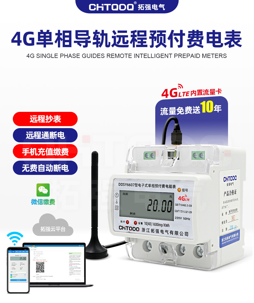 該儀表能實現預付費,設定日抄表,掌上電腦編程及抄表等功能;并具有紅外和GPRS聯網等功能,電表內置有10年流量卡,無需網關、采集器、集中器等設備,通電即可自動聯網,電表具有遠程抄表、遠程控制電表通斷電及手機APP遠程售電功能。通信規約可支持DL/T 645-2007《多功能電能表通信規約》,為物業小區用戶用電自動化管理提供了必備的條件,適用于小區,商超,寫字樓,工業園,出租房,公寓,工廠內部能耗管理等場所。