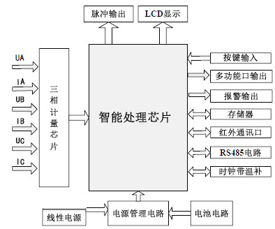 DTSD6607型電子式三相智能電能表工作原理如圖1所示: